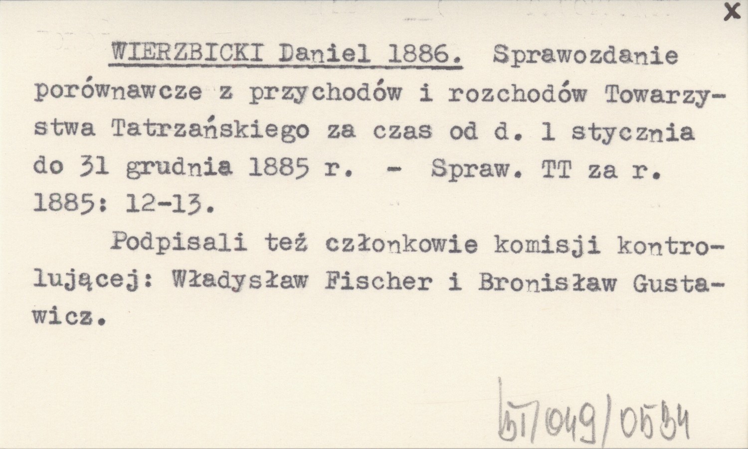 WIERZBICKI Daniel 1886 Sprawozdanie porównawcze z przychodów i rozchodów Towarzystwa Tatrzańskiego za czas od d. 1 stycznia do 31 grudnia 1885 r.