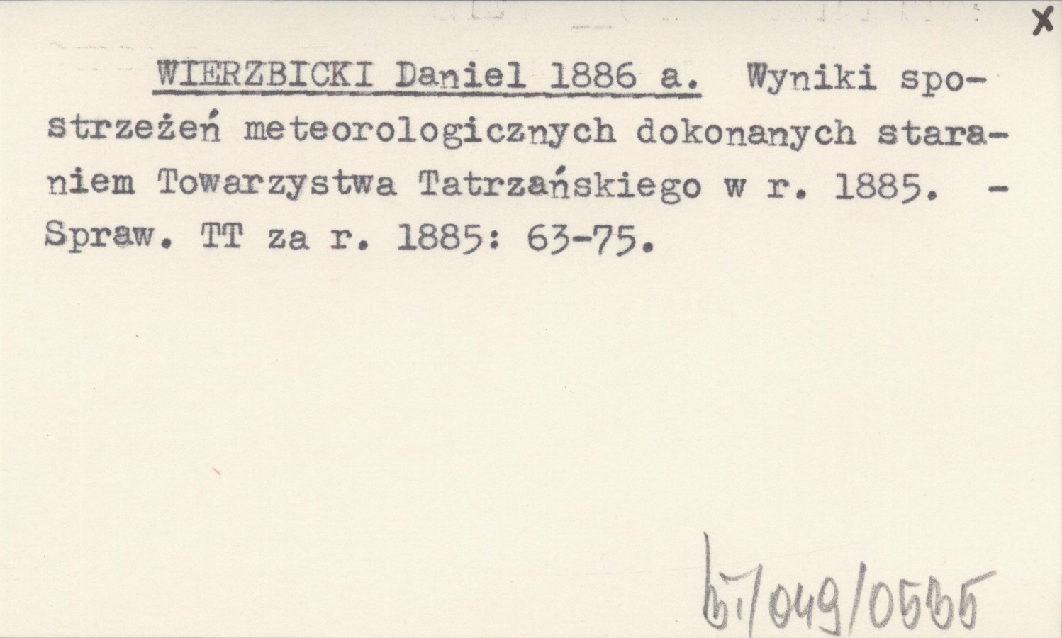 WIERZBICKI Daniel 1886 a Wyniki spostrzeżeń meteorologicznych dokonanych staraniem Towarzystwa Tatrzańskiego w r. 1885.