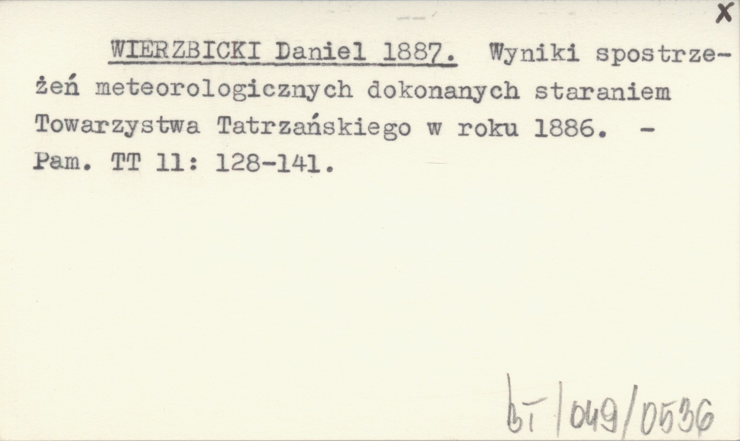 WIERZBICKI Daniel 1887 Wyniki spostrzeżeń meteorologicznych dokonanych staraniem Towarzystwa Tatrzańskiego w roku 1886.