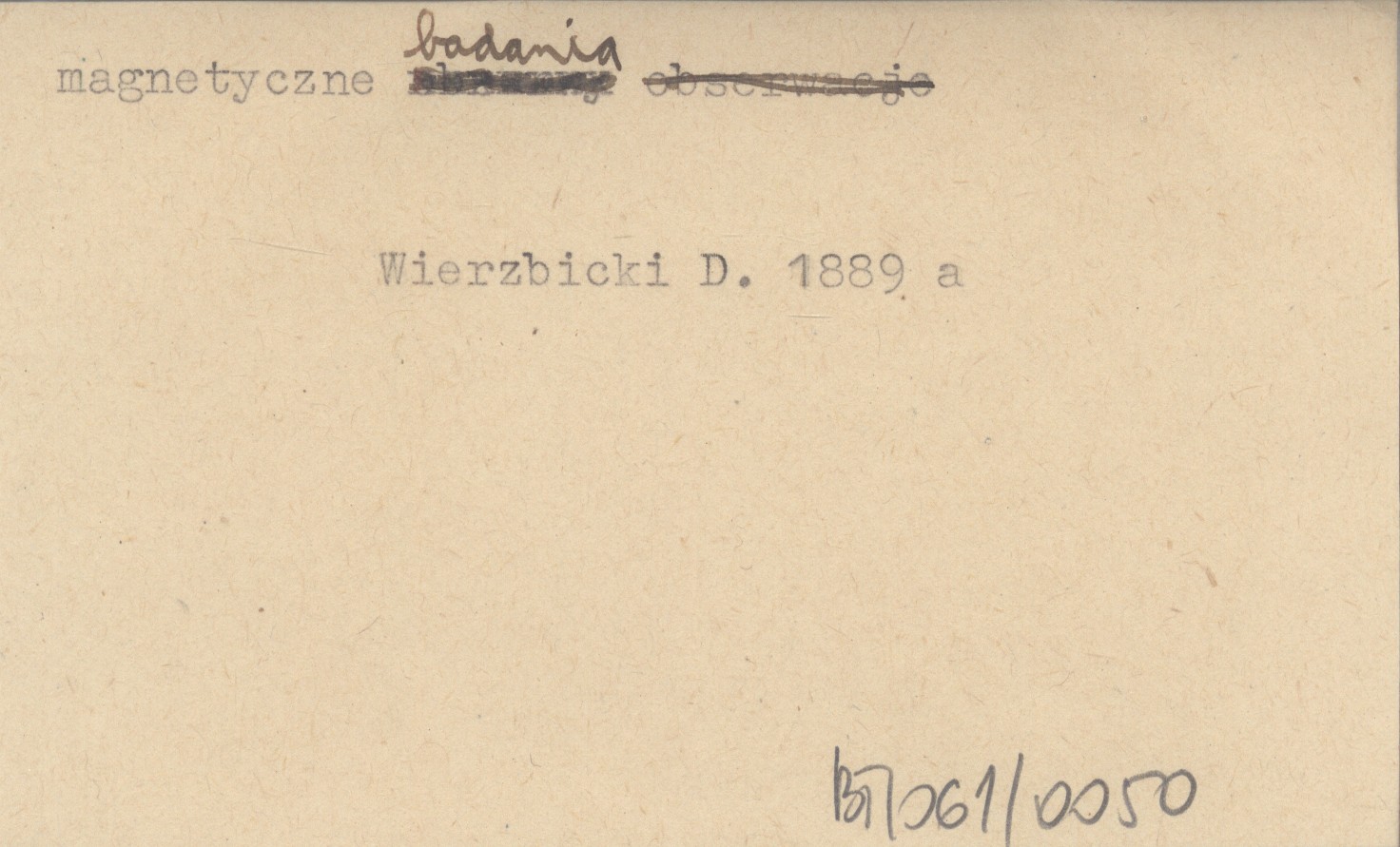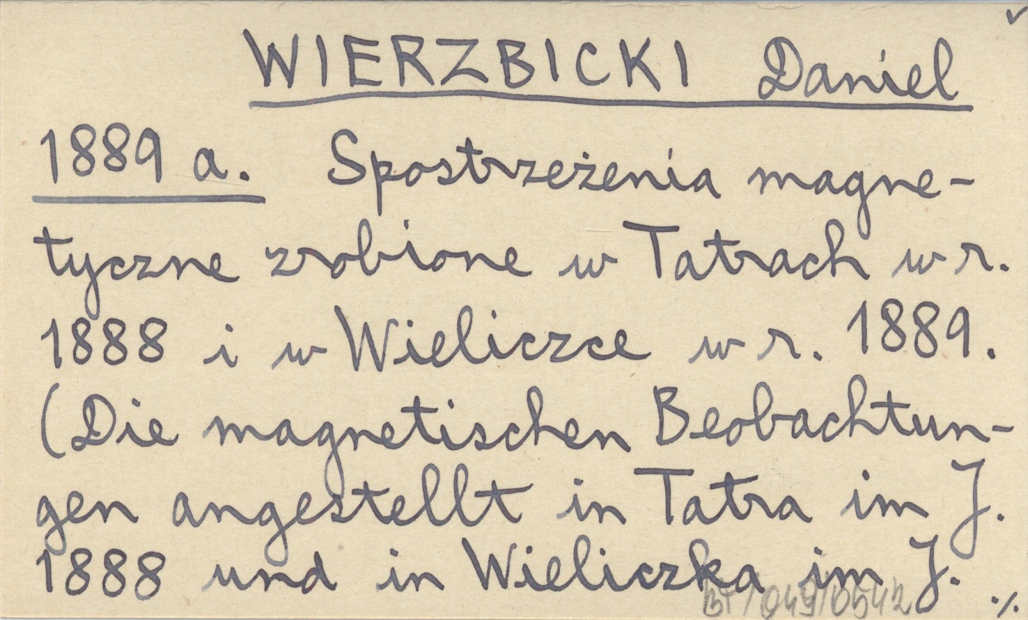 WIERZBICKI Daniel 1889 a Spostrzeżenia magnetyczne zrobione w Tatrach w r. 1888 i w Wieliczce w r. 1889. (Die magnetischen Beobachtungen angestellt in Tatra im J. 1888 und in Wieliczka im J. 1889.