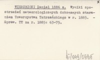 WIERZBICKI Daniel 1886 a Wyniki spostrzeżeń meteorologicznych dokonanych staraniem Towarzystwa Tatrzańskiego w r. 1885.