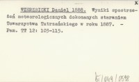 WIERZBICKI Daniel 1888 Wyniki spostrzeżeń meteorologicznych dokonanych staraniem Towarzystwa Tatrzańskiego w roku 1887.