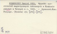 WIERZBICKI Daniel 1889 Wypadki spostrzeżeń magnetycznych dokonanych w Krakowie jakoteż w Tatrach w r. 1888.