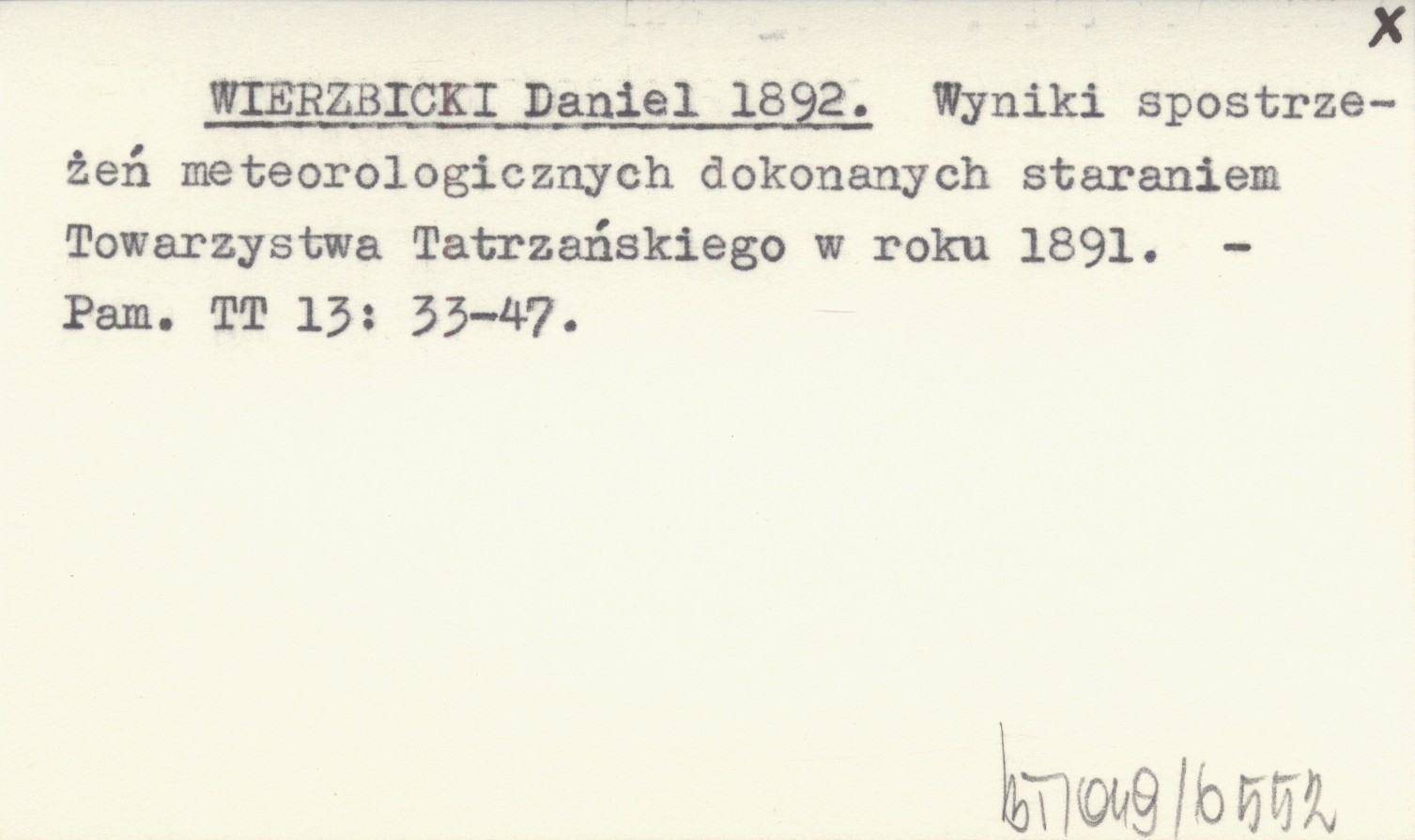 WIERZBICKI Daniel 1892 Wyniki spostrzeżeń meteorologicznych dokonanych staraniem Towarzystwa Tatrzańskiego w roku 1891.