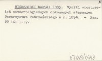 WIERZBICKI Daniel 1895 Wyniki spostrzeżeń meteorologicznych dokonanych staraniem Towarzystwa Tatrzańskiego w r. 1894.