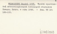 WIERZBICKI Daniel 1897 Wyniki spostrzeżeń meteorologicznych dokonanych staraniem Towarz. Tatrz. w roku 1896.