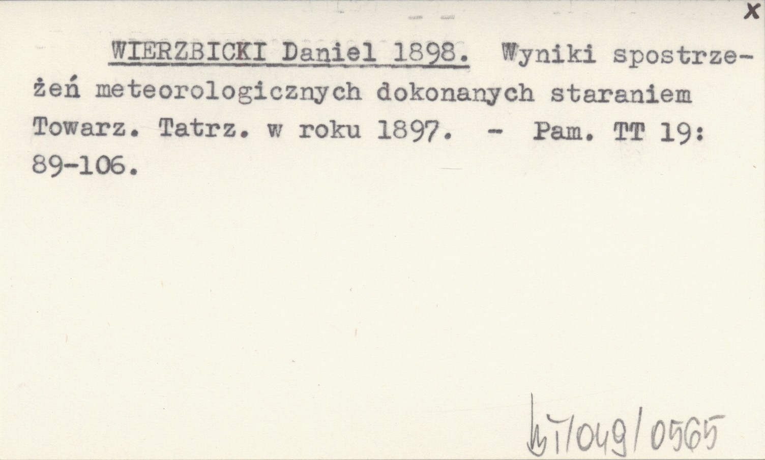 WIERZBICKI Daniel 1898 Wyniki spostrzeżeń meteorologicznych dokonanych staraniem Towarz. Tatrz. w roku 1897.