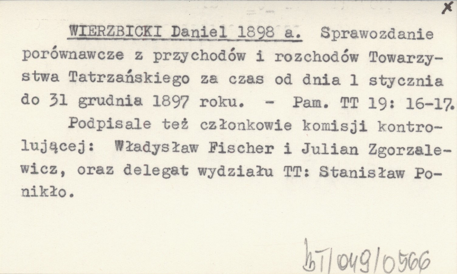 Pamiętnik Towarzystwa Tatrzańskiego, 19: 16-17. Podpisale też członkowie komisji kontrolującej: Władysław Fischer i Julian Zgorzalewicz, oraz delegat wydziału TT: Stanisław Ponikło.