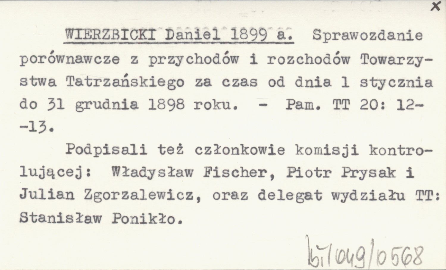 Pamiętnik Towarzystwa Tatrzańskiego, 20: 12-13. Podpisali też członkowie komisji kontrolującej: Władysław Fischer, Piotr Prysak i Julian Zgorzalewicz, oraz delegat wydziału TT: Stanisław Ponikło.