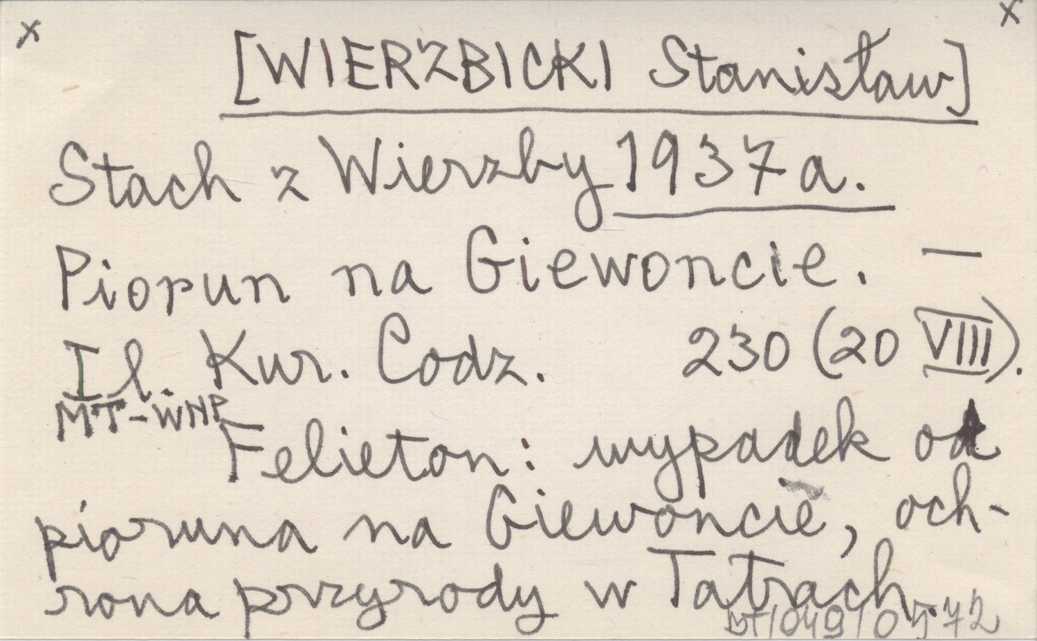 Stach z Wierzby [WIERZBICKI Stanisław] 1937 a Piorun na Giewoncie.
