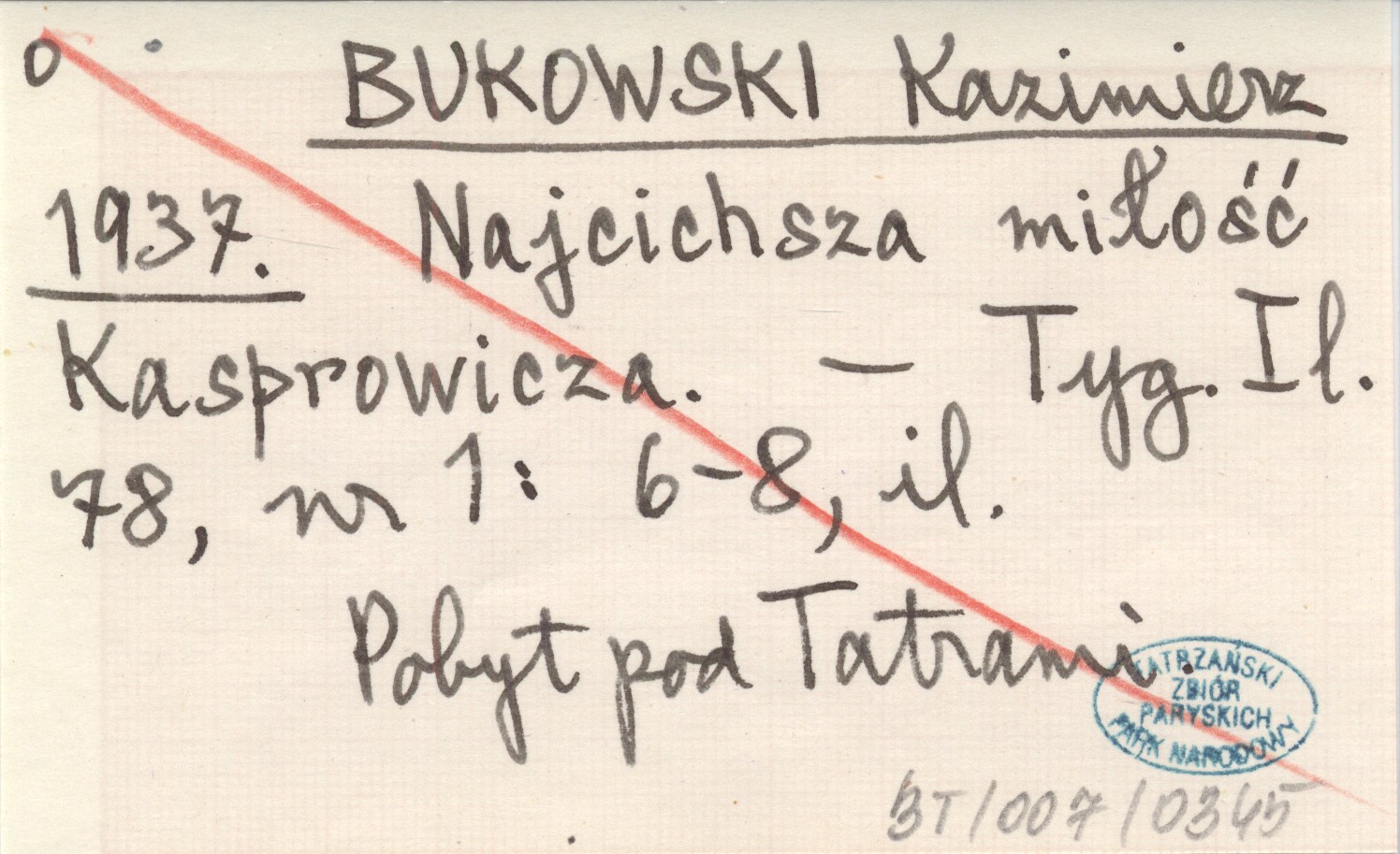 BUKOWSKI Kazimierz 1937 Najcichsza miłość Kasprowicza.