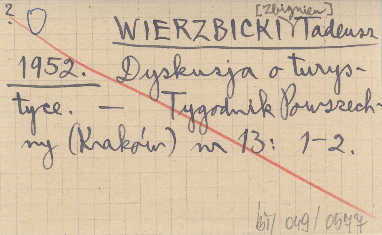 WIERZBICKI [Zbigniew] Tadeusz 1952 Dyskusja o turystyce.