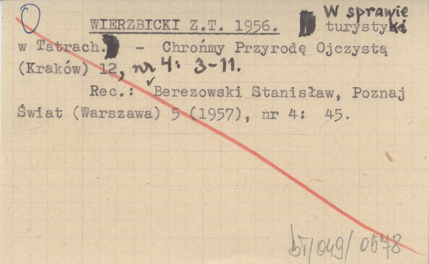 WIERZBICKI Z.T. 1956 W sprawie turystyki w Tatrach.
