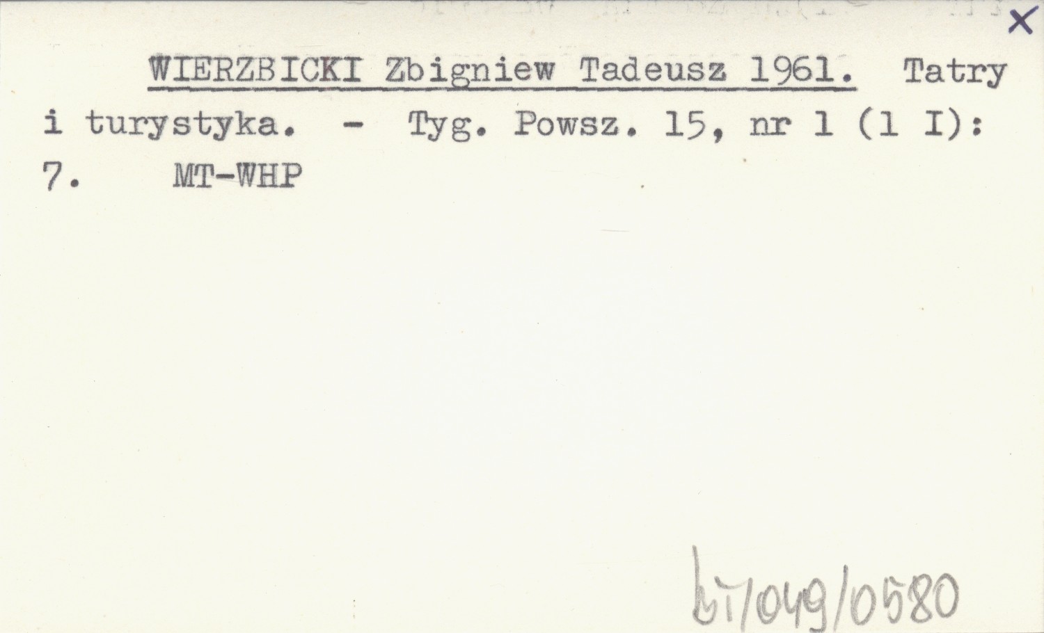 WIERZBICKI Zbigniew Tadeusz 1961 Tatry i turystyka.