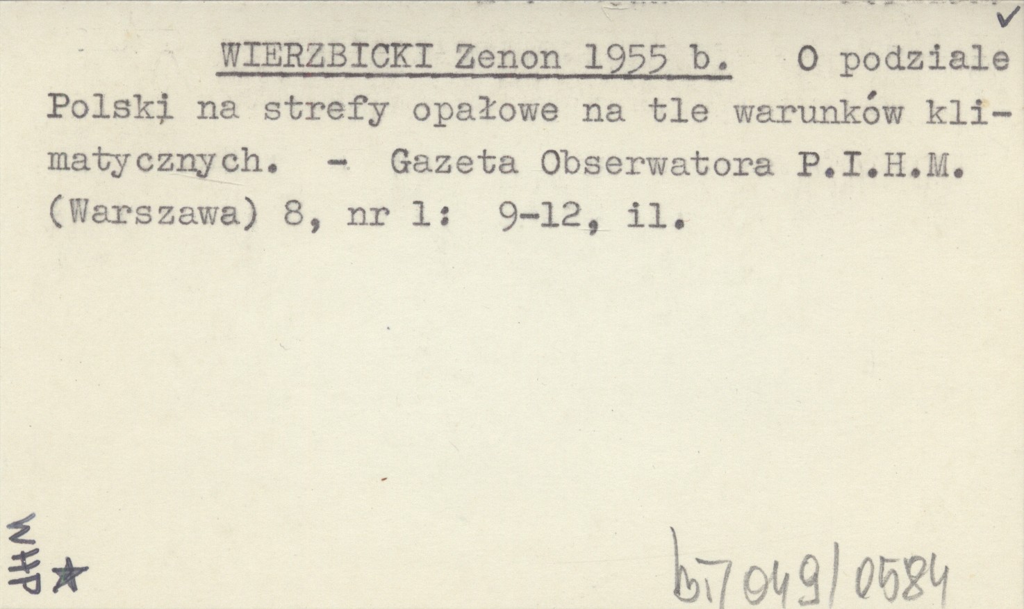 WIERZBICKI Zenon 1955 b O podziale Polski na strefy opałowe na tle warunków klimatycznych.