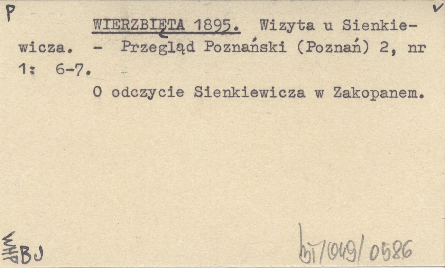 Przegląd Poznański (Poznań) , 2, nr 1: 6-7. O odczycie Sienkiewicza w Zakopanem.