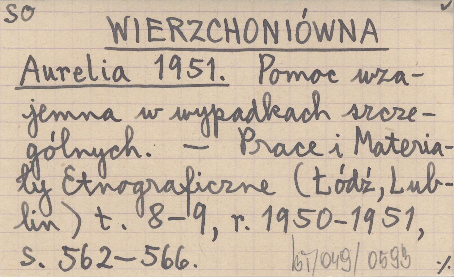 WIERZCHONIÓWNA Aurelia 1951 Pomoc wzajemna w wypadkach szczególnych.
