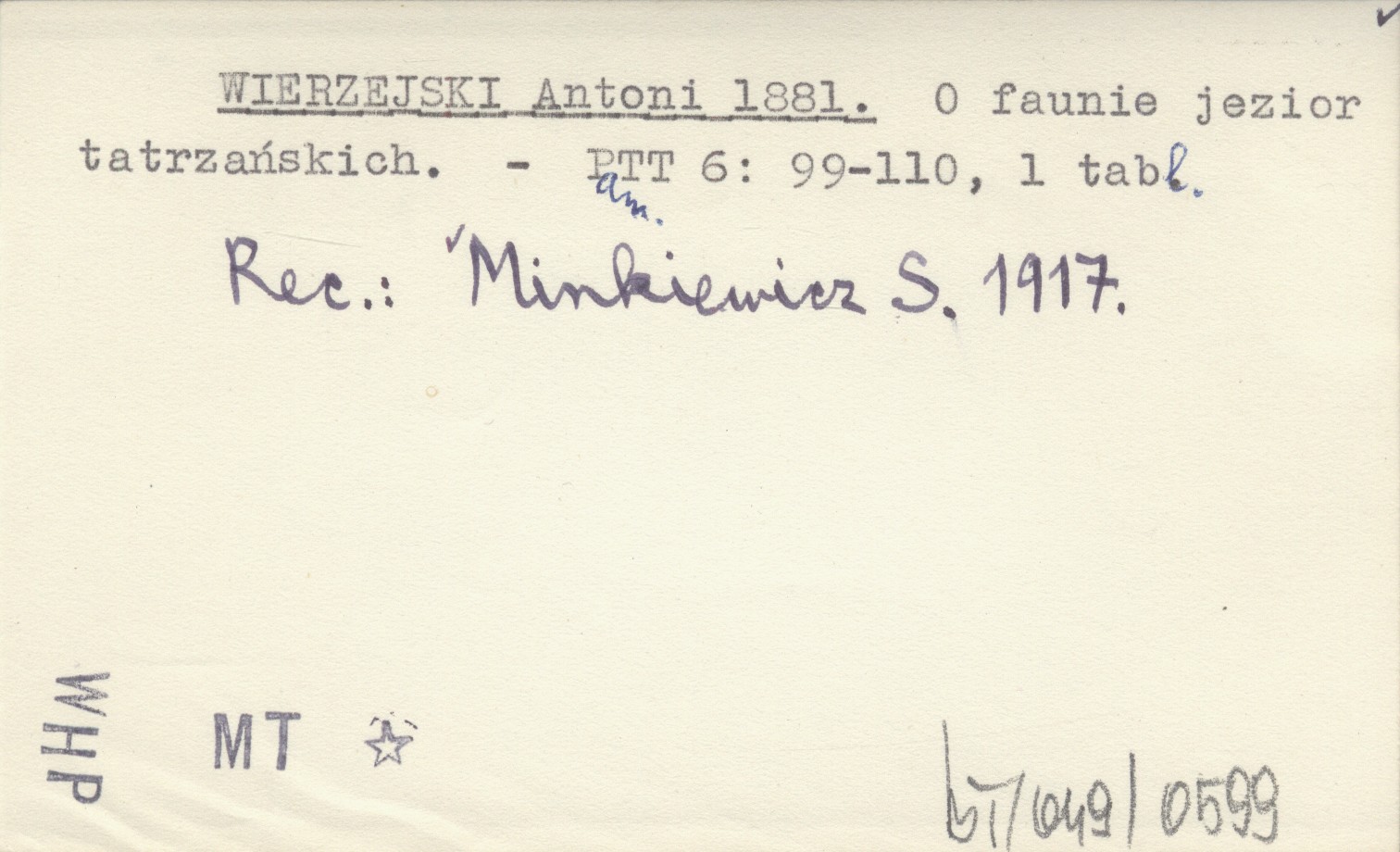 WIERZEJSKI Antoni 1881 O faunie jezior tatrzańskich.