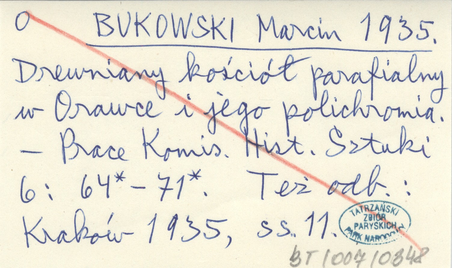 BUKOWSKI Marcin 1935 Drewniany kościół parafialny w Orawce i jego polichromia.