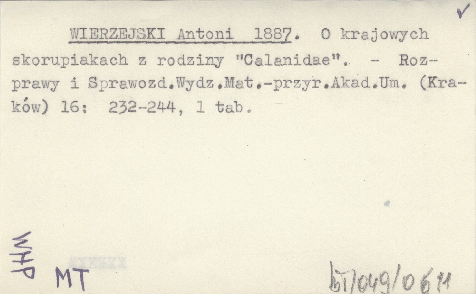 WIERZEJSKI Antoni 1887 O krajowych skorupiakach z rodziny "Calanidae".
