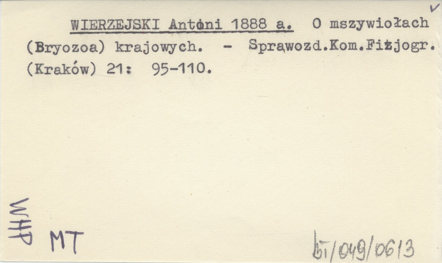 WIERZEJSKI Antoni 1888 a O mszywiołach (Bryozoa) krajowych.