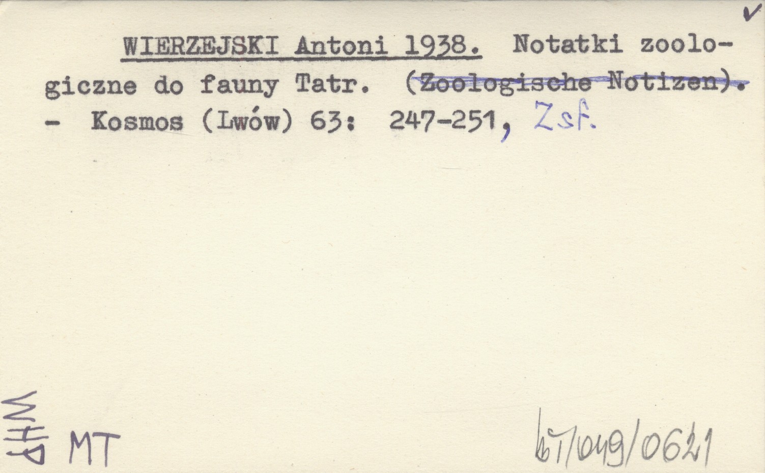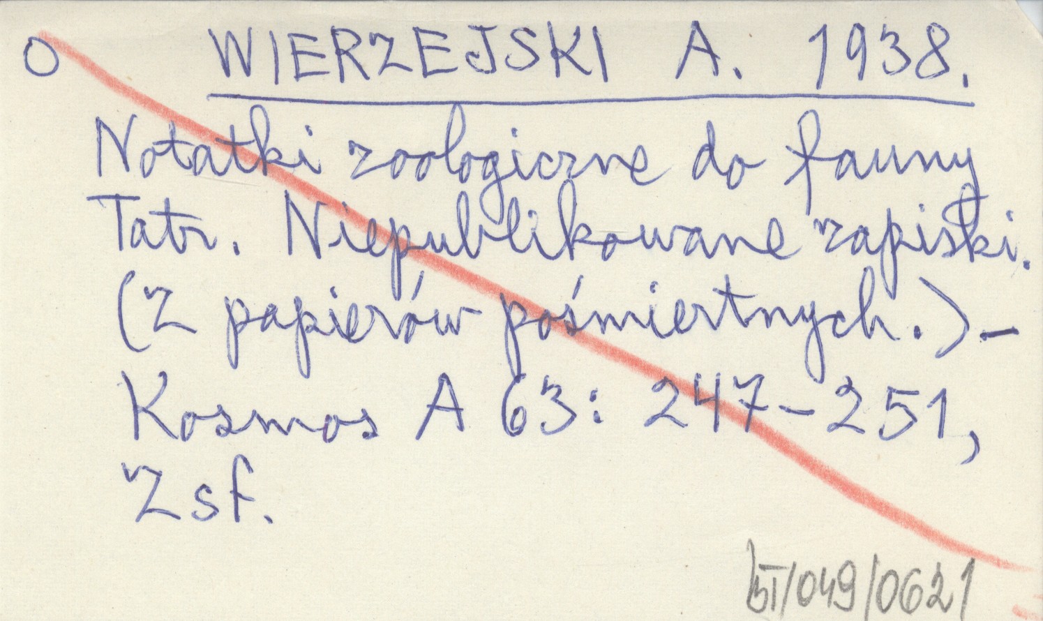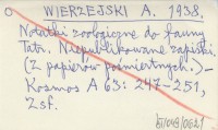 WIERZEJSKI Antoni 1938 Notatki zoologiczne do fauny Tatr. Niepublikowane zapiski. (Z papierów pośmiertnych).