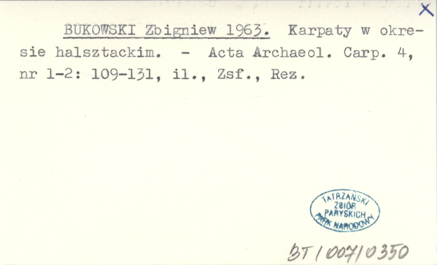 BUKOWSKI Zbigniew 1963 Karpaty w okresie halsztackim.