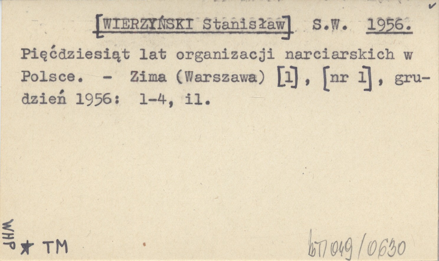 S.W. [WIERZYŃSKI Stanisław] 1956 Pięćdziesiąt lat organizacji narciarskich w Polsce.
