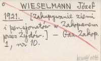 WIESELMANN Józef 1921 [Zakupywanie ziemi i pensjonatów w Zakopanem przez Żydów].