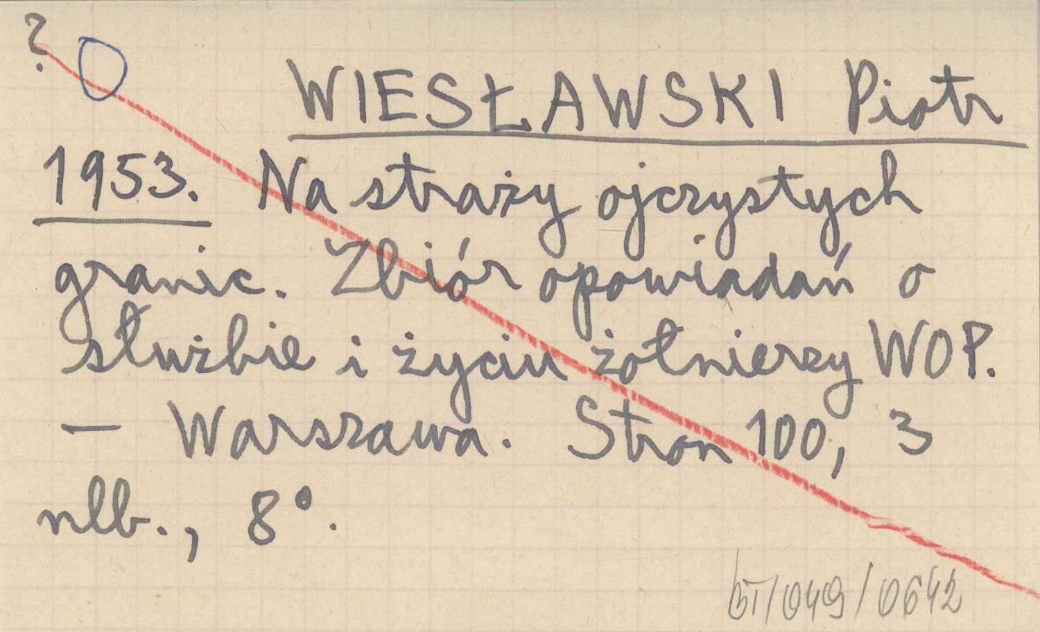 WIESŁAWSKI Piotr 1953 Na straży ojczystych granic. Zbiór opowiadań o służbie i życiu żołnierzy WOP.