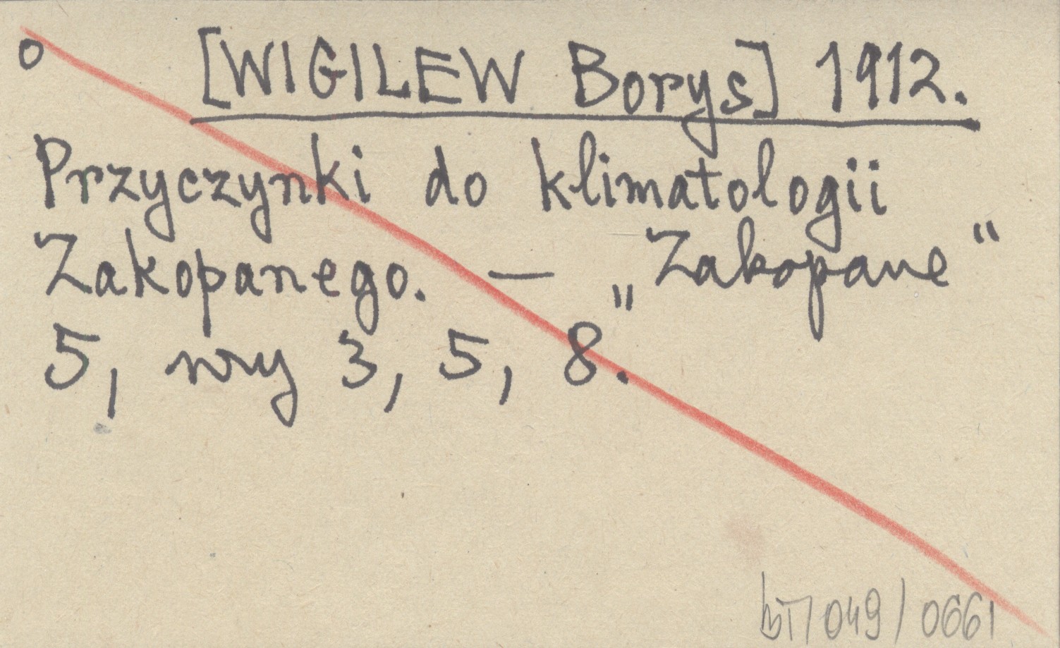 [WIGILEW Borys] 1912 Przyczynki do klimatologii Zakopanego.