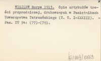 WIGILEW Borys 1913 Spis artykułów treści przyrodniczej, drukowanych w Pamiętnikach Towarzystwa Tatrzańskiego (T. T. I-XXXIII).