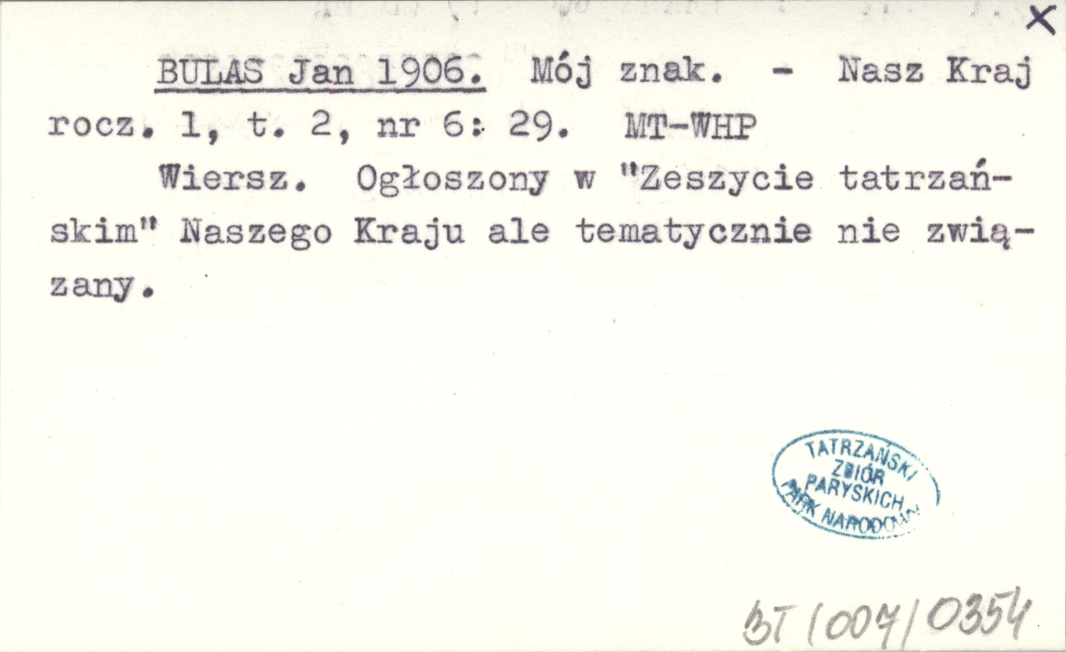 Nasz Kraj, R. 1, t. 2, nr 6: 29. Wiersz. Ogłoszony w "Zeszycie tatrzańskim" Naszego Kraju ale tematycznie nie związany.