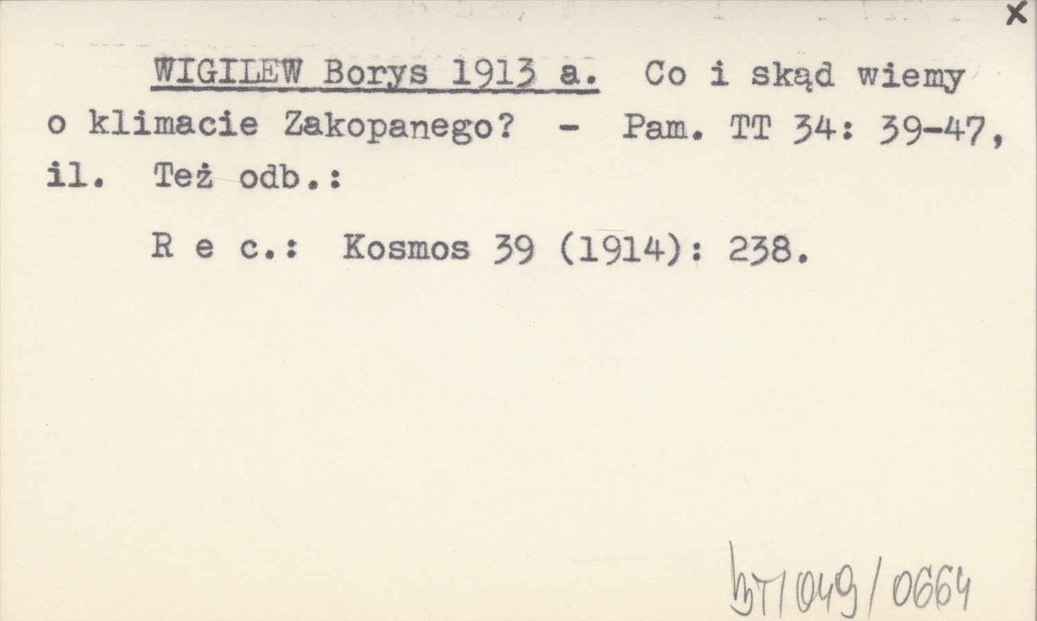 WIGILEW Borys 1913 a Co i skąd wiemy o klimacie Zakopanego?