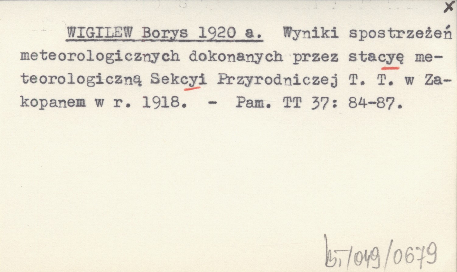 WIGILEW Borys 1920 a Wyniki spostrzeżeń meteorologicznych dokonanych przez stacyę meteorologiczną Sekcyi Przyrodniczej T. T. w Zakopanem w r. 1918.
