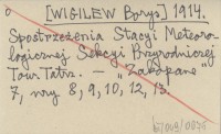 WIGILEW Borys 1916 Wyniki spostrzeżeń meteorologicznych, dokonanych przez stacyę meteorologiczną Sekcyi Przyrodniczej T. T. w Zakopanem w latach 1914 i 1915.