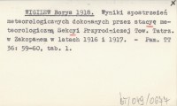 WIGILEW Borys 1918 Wyniki spostrzeżeń meteorologicznych dokonanych przez stacyę meteorologiczną Sekcyi Przyrodniczej Tow. Tatrz. w Zakopanem w latach 1916 i 1917.