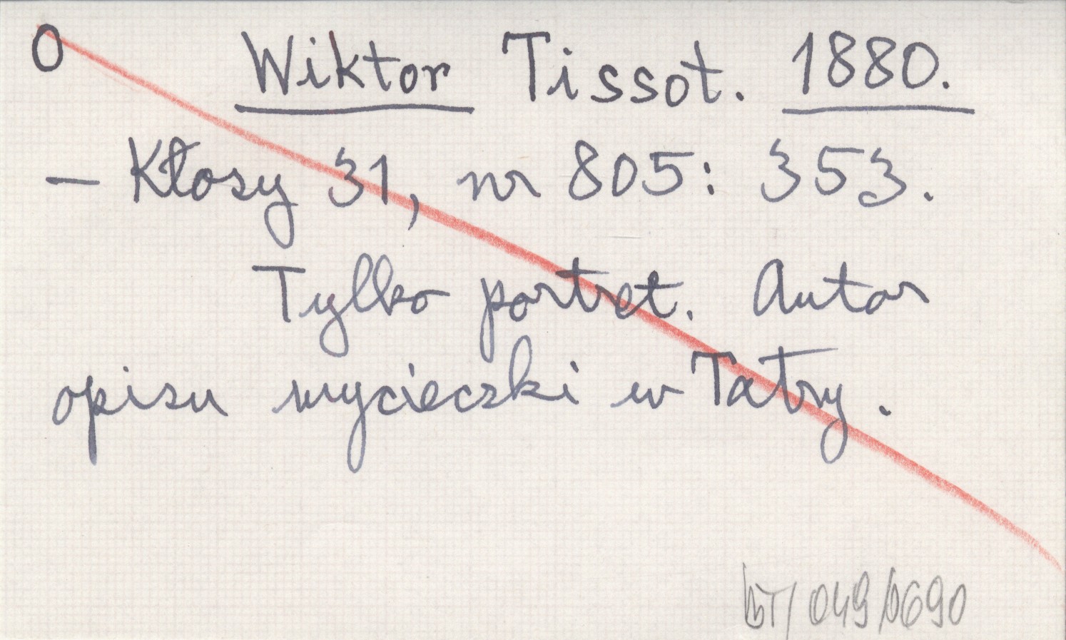 Kłosy, 31, nr 805: 353. Tylko portret. Autor opisu wycieczki w Tatry.