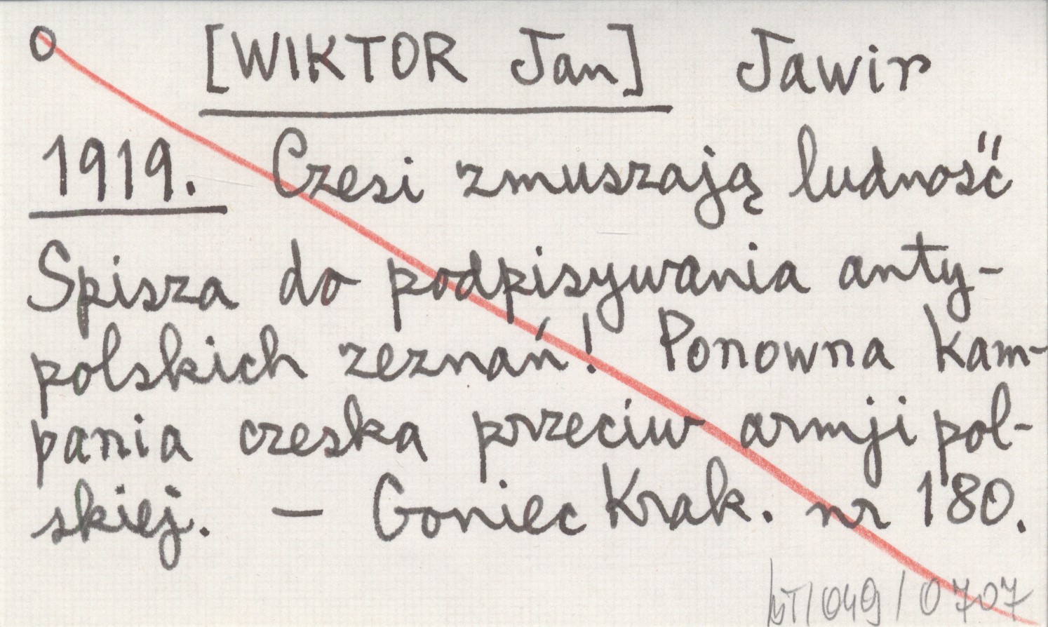 Jawir [WIKTOR Jan] 1919 Czesi zmuszają ludność Spisza do podpisywania antypolskich zeznań! Ponowna kampania czeska przeciw armji polskiej.