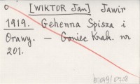 Jawir [WIKTOR Jan] 1919 Gehenna Spisza i Orawy.
