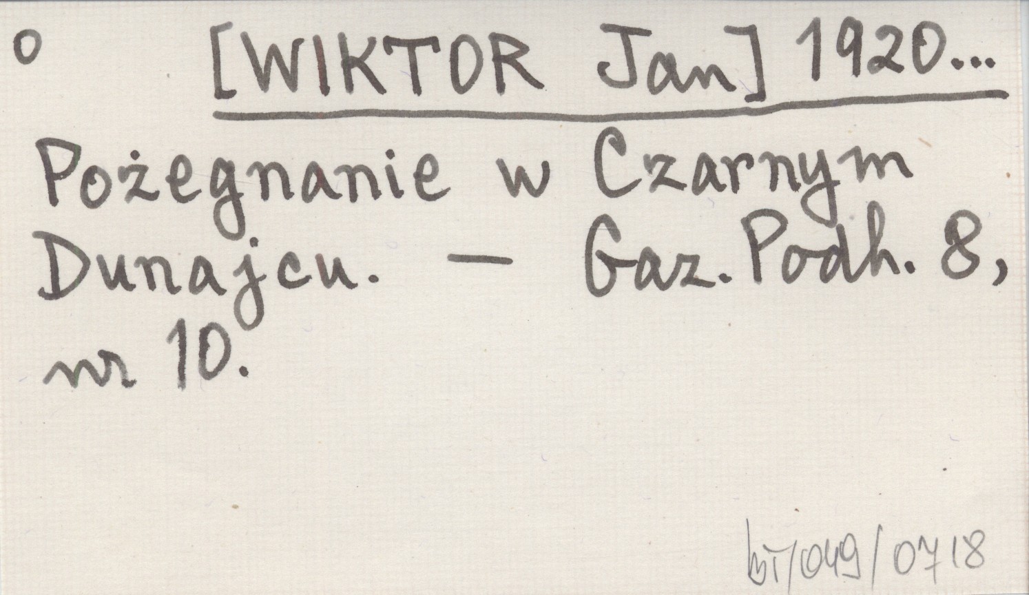 [WIKTOR Jan] 1920... Pożegnanie w Czarnym Dunajcu.