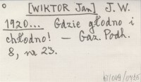 J. W. [WIKTOR Jan] 1920... Gdzie głodno i chłodno!