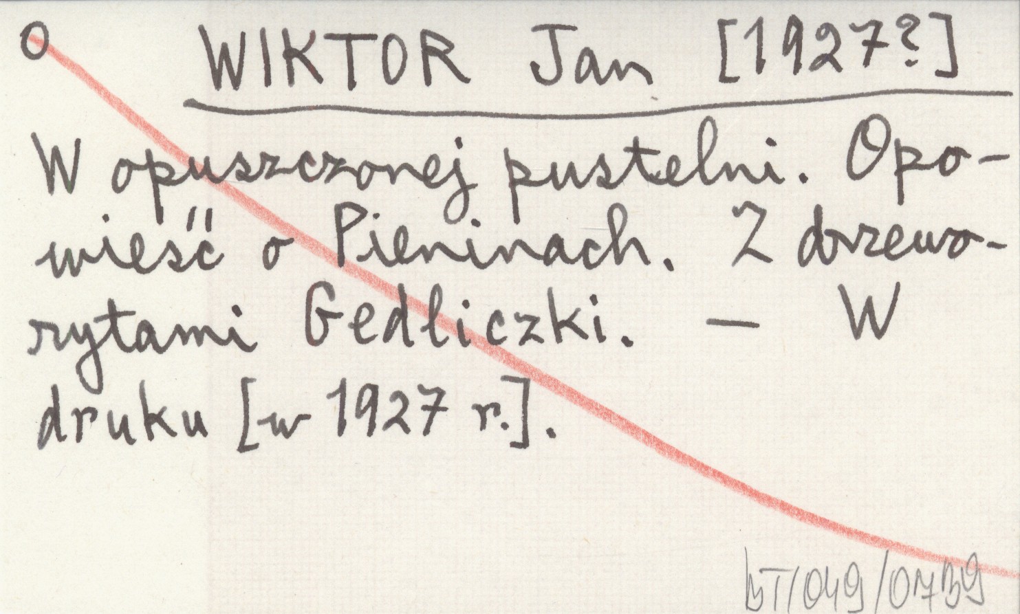 WIKTOR Jan [1927?] W opuszczonej pustelni. Opowieść o Pieninach. Z drzeworytami Gedliczki.