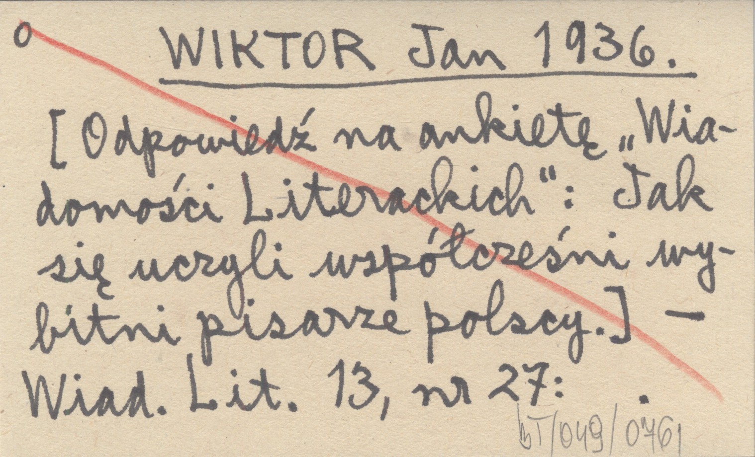 WIKTOR Jan 1936 [Odpowiedź na ankietę "Wiadomości Literackich": Jak się uczyli współcześni wybitni pisarze polscy].