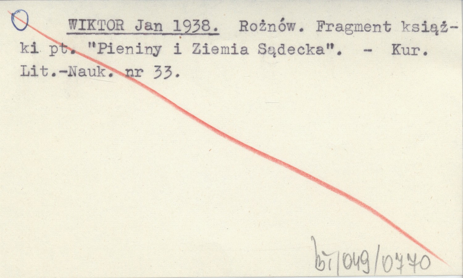 WIKTOR Jan 1938 Rożnów. Fragment książki pt."Pieniny i Ziemia Sądecka".