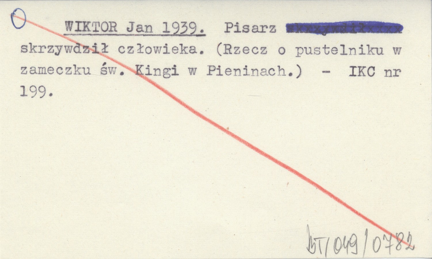 WIKTOR Jan 1939 Pisarz skrzywdził człowieka. (Rzecz o pustelniku w zameczku św. Kingi w Pieninach).