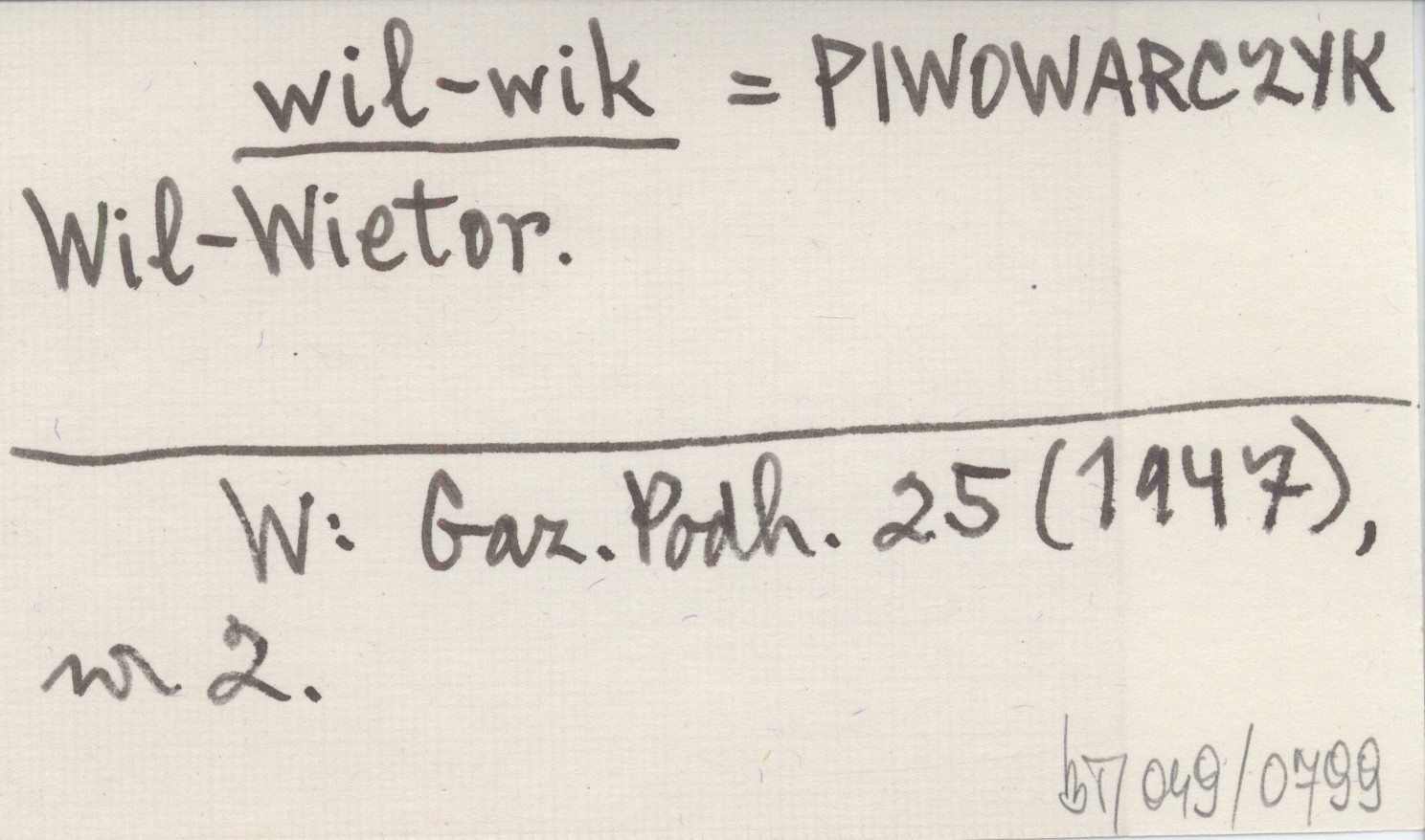 wil-wik PIWOWARCZYK Wil-Wietor. Gazeta Podhalańska 25 (1947), nr 2.