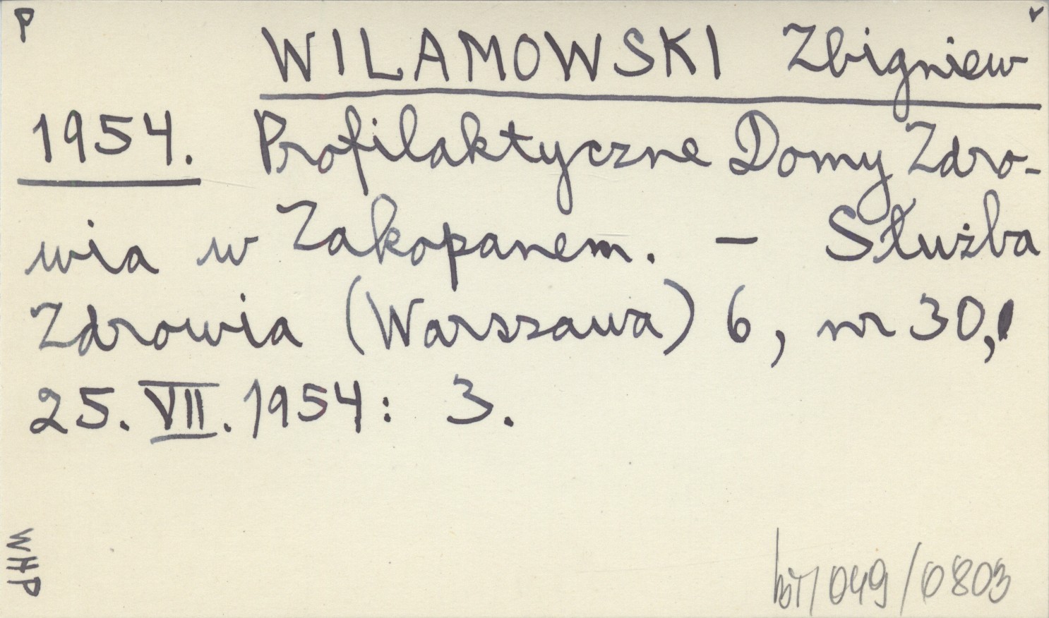 WILAMOWSKI Zbigniew 1954 Profilaktyczne Domy Zdrowia w Zakopanem.