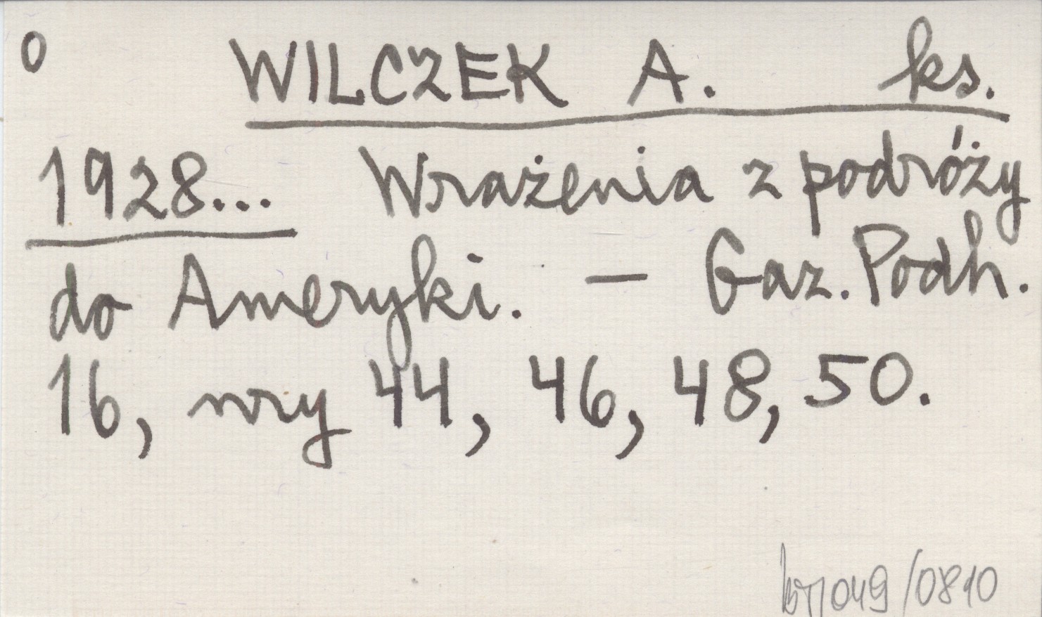 WILCZEK A. ks. 1928... Wrażenia z podróży do Ameryki.