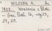 WILCZEK A. ks. 1928... Wrażenia z podróży do Ameryki.